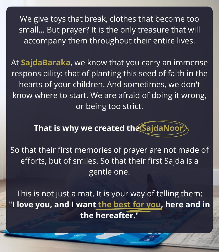 At SajdaBaraka, we believe that every parent who invests in their child's spiritual education deserves an immense reward.